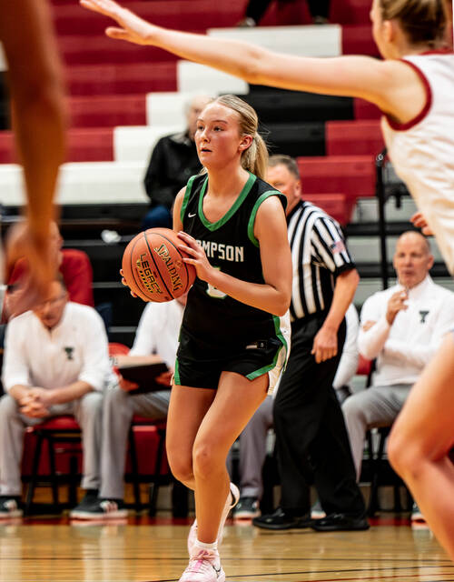 In the final game of Friday’s action, No. 4 Thompson (10-2) upset No. 2 Valley City (8-2) in the Devils Lake Youth Activities Shootout, 66-56.