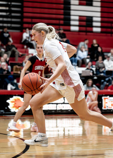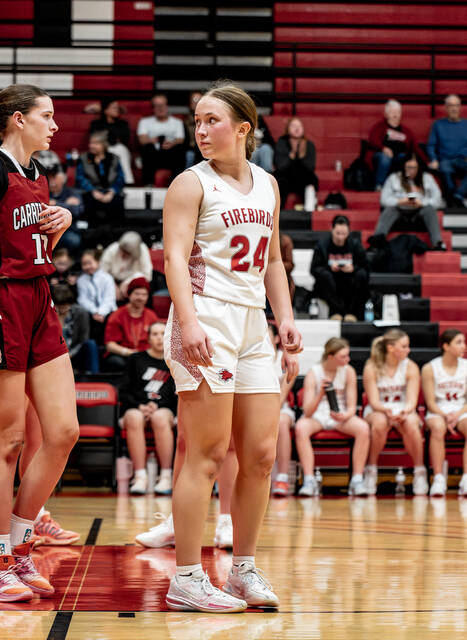 But Aniston Hoornaert, who eventually scored a career-high 25, made 4-of-4 free throws and hit three triples in the first half as Carrington took over. Sienna Topp added a pair of threes.