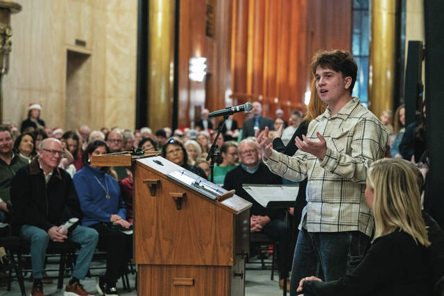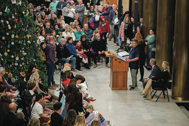 Lambert then asked one of his former students to offer a blessing. Now in college, Haiden Person introduced himself as an enrolled member of the Standing Rock Sioux Tribe and descendant of the Turtle Mountain Band of Chippewa, and said that in their Indigenous culture, winter is a time when people come together as a community, pointing out the parallels of everyone present for the tree lighting ceremony in that same sense of community. “In these holiday times, I would just like everyone to just do little things (for) other people, because you never know what people are going through.”