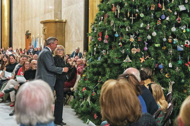 The first lady selected “Peace” as the theme of this year’s State Christmas Tree, which will be on public display throughout the holiday season and has been decorated with handmade ornaments submitted by the public over the years. “That includes 170 new ornaments donated this year,” she said. “Each ornament on the tree is a shining example of the giving spirit of North Dakotans.”