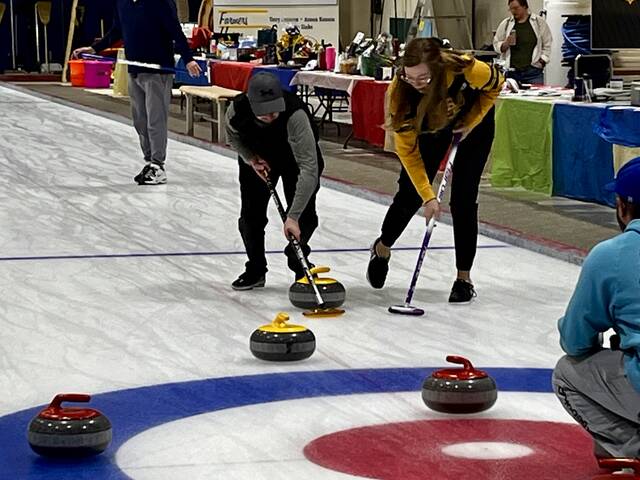 More photos from the Lake Region Curling Club’s year-end bonspiel from the weekend of April 10 – 12. Residents were on hand for the prime rib dinner held on Saturday, April 11 as a silent auction took place next to the rink, as curlers competed on the ice. Curling season will resume in November.
